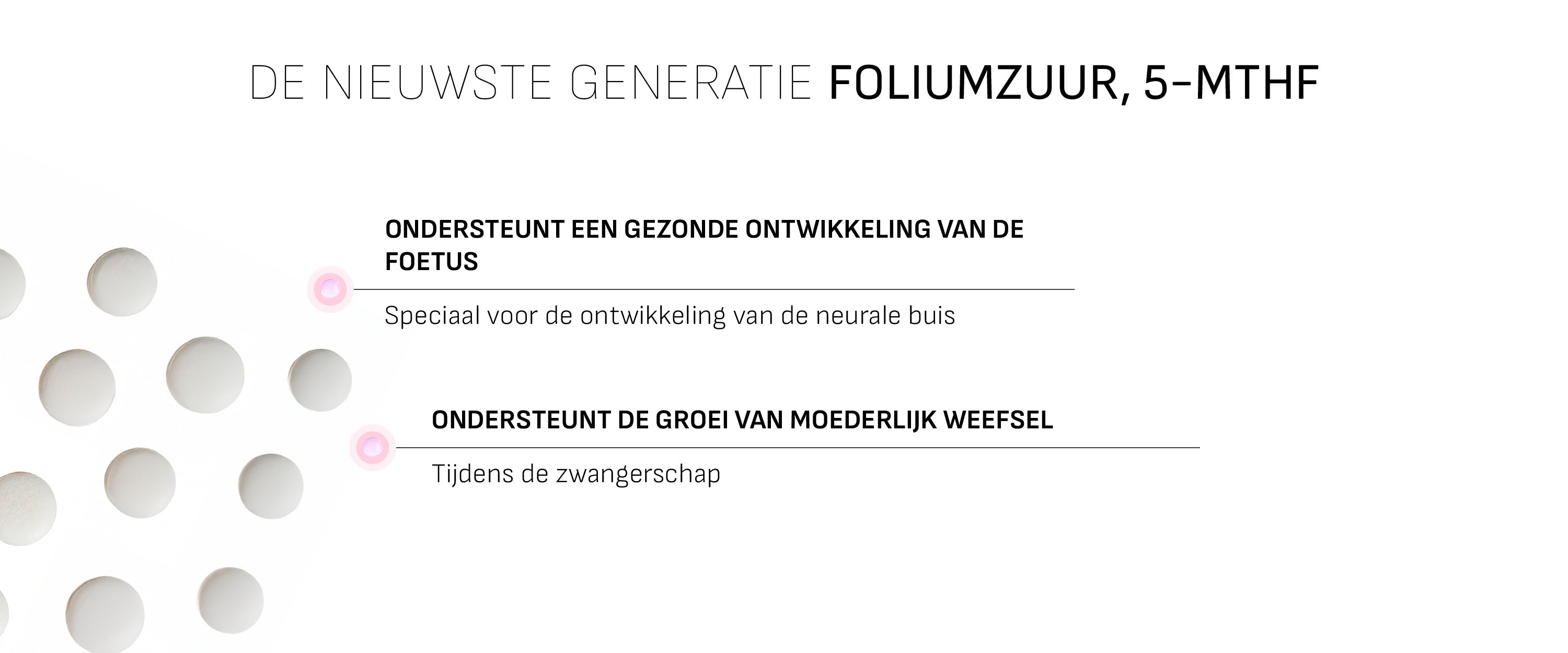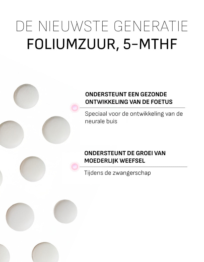 - Hoge dosering van 600 μg foliumzuur per tablet